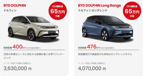 比亞迪日本官網(wǎng)顯示,海豚標(biāo)準(zhǔn)版車型在當(dāng)?shù)氐氖蹆r(jià) 363 萬(wàn)日元(備注:當(dāng)前約 17.9 萬(wàn)元人民幣),動(dòng)力電池容量 44.9kWh ,WLTC 續(xù)航里程 400 公里。此外,比亞迪海豚還在當(dāng)?shù)赝瞥隽碎L(zhǎng)續(xù)航版,售價(jià)為 407 萬(wàn)日元(當(dāng)前約 20.1 萬(wàn)元人民幣),動(dòng)力電池容量 58.56kWh,WLTC 續(xù)航里程 476 公里。作為對(duì)比,比亞迪海豚在國(guó)內(nèi)起售價(jià)為 11.68 萬(wàn)元。