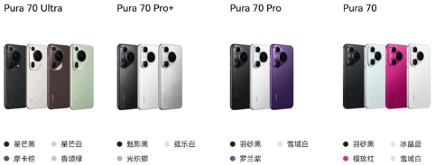 華為 Pura 70 系列手機共包含標準版、Pro 版、Pro + 版、Ultra 版四款配色,匯總如下: