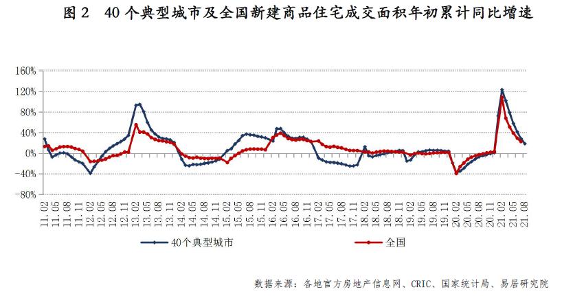 報告顯示,2021年8月,易居研究院監(jiān)測的40個典型城市新建商品住宅成交面積為2324.9萬平方米,環(huán)比下降13.6%,同比大跌31.0%。自5月年內(nèi)首次同比增速轉負以來,新建商品住宅成交量已連續(xù)3個月同比下降。