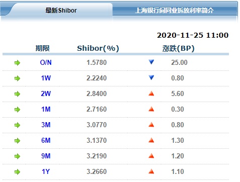 市場流動性方面,周三資金面平穩(wěn),Shibor短端品種漲跌不一。隔夜品種下行25bp報1.578%,7天期下行0.8bp報2.224%,14天期上行5.6bp報2.84%,1個月期上行0.3bp報2.716%。