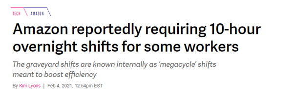 也就是說(shuō),亞馬遜的要求是白天工作時(shí)間可以縮短,但晚上熬夜加班的時(shí)長(zhǎng)要更長(zhǎng)。