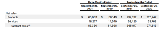 截自蘋(píng)果 2021 財(cái)年 Q4 財(cái)報(bào)