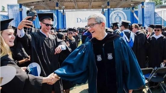 2018年5月13日,蘋(píng)果CEO蒂姆·庫(kù)克在母校杜克大學(xué)的畢業(yè)典禮上發(fā)表演講。他對(duì)現(xiàn)場(chǎng)的年輕人呼吁:請(qǐng)無(wú)所畏懼,做最后一個(gè)接受現(xiàn)狀的人,以及第一個(gè)站出來(lái)讓情況變得更好的人。除了常規(guī)賀詞,庫(kù)克演講中還談到了氣候變化、槍支暴力、數(shù)據(jù)隱私等社會(huì)問(wèn)題。