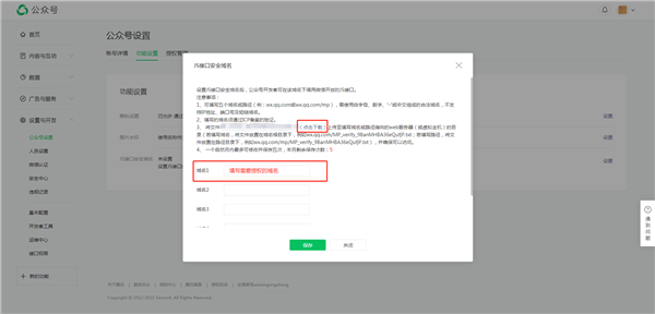 3.點(diǎn)擊設(shè)置進(jìn)入到配置頁面,填寫好需要授權(quán)的域名,然后下載校驗(yàn)文件上傳至填寫域名或路徑指向的web服務(wù)器(或虛擬主機(jī))的目錄,然后保存即可授權(quán)成功。