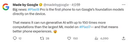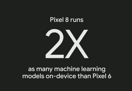 此外,Pixel 8 Pro 號稱是第一款直接在設(shè)備上運(yùn)行谷歌 AI 模型的手機(jī),其計(jì)算量是 Pixel 7 上最大的 ML 模型的 150 倍。