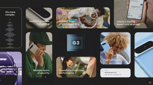 此外,Tensor G3 可提供更好的拍照和視頻功能;還可以翻譯 49 種語言的面對面對話、實(shí)時轉(zhuǎn)錄消息以及翻譯符號;Google Assistant 現(xiàn)在可以檢測并過濾掉更多垃圾電話;Pixel 可以檢測用戶是否遭遇到嚴(yán)重車禍,并呼叫緊急服務(wù)。