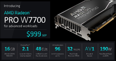 AMD Radeon Pro W7700 從今天開(kāi)始就可以作為單獨(dú)的顯卡購(gòu)買(mǎi),本月開(kāi)始預(yù)裝這款顯卡的機(jī)器也會(huì)上市。