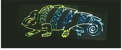 受變色龍變色能力的啟發(fā),研究人員開發(fā)了一種動態(tài)且可持續(xù)的變色墨水。圖為研究團隊創(chuàng)建的3D打印變色龍插圖。