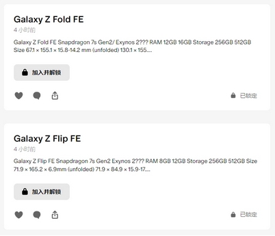 4 月 3 日消息,@kro_roe 表示,三星正在開發(fā) Galaxy Z Fold FE 和 Flip FE 折疊屏手機,同時還放出了部分參數(shù)信息。