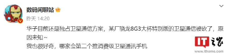 綜合此前報(bào)道,近一年來,有多家廠商傳出新機(jī)支持衛(wèi)星通訊功能的消息,包括魅族、摩托羅拉和小米等。但是在上月中旬,博主 @數(shù)碼閑聊站 爆料稱,華為手機(jī)目前還是獨(dú)占衛(wèi)星通訊方案,小米的驍龍 8G3 大杯特別版(預(yù)計(jì)為小米 14 Pro 特別版)的這一功能被砍,原因未知。
