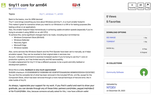 1 月 2 日消息,tiny11 core 是一款基于微軟 Windows11 進(jìn)行“極致精簡(jiǎn)”的定制系統(tǒng),號(hào)稱只需要 2GB RAM 即可流暢運(yùn)行,目前開發(fā)者 NTDEV 為這款系統(tǒng)新增了 ARM64 支持,體積不到 3 GB,感興趣的小伙伴們可以點(diǎn)此訪問項(xiàng)目地址。