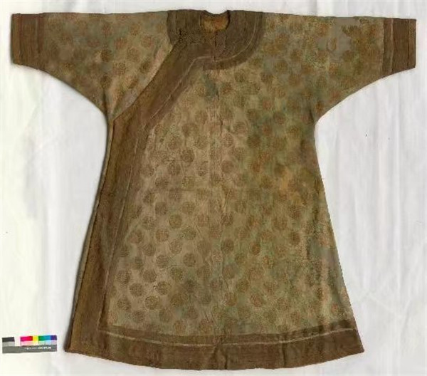 慈禧雪青緞平金繡團(tuán)壽女夾袍(修復(fù)前)