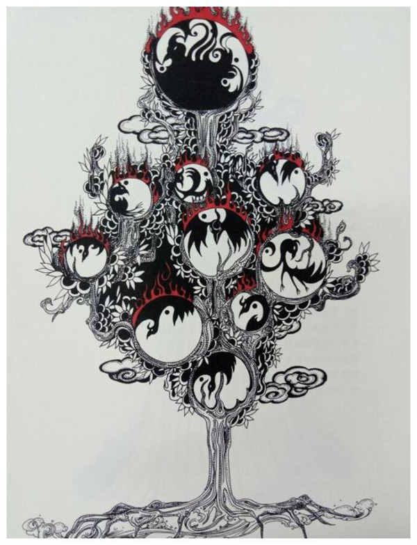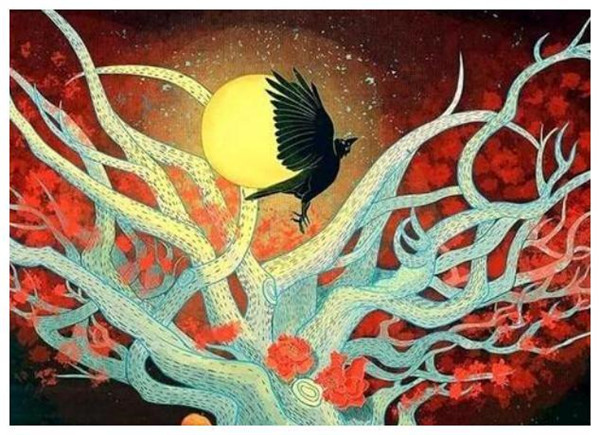 這是山海經(jīng)中對扶桑神樹的一句描述。扶桑神樹又名通天神樹,連通著“神界、人間、冥界”三界大門。樹上住著10個太陽,每個太陽都由一只三足烏承載著在空中。它們輪流工作,每日都會有一個太陽高掛樹端,剩余的九個太陽便留在神樹下,日復(fù)一日。