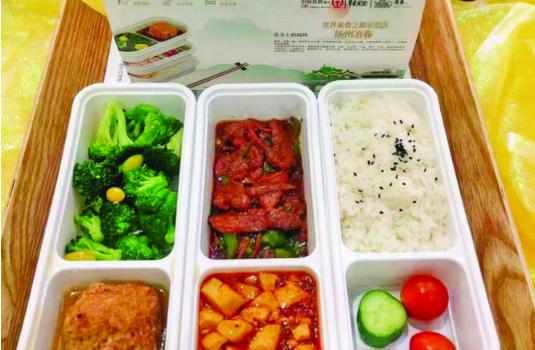 中國傳統(tǒng)四大菜系之一的淮揚(yáng)菜素有“東南第一佳味,天下之至美”之美譽(yù)。其中鹽城“八大碗”深得淮揚(yáng)菜精髓,色、相、味、形頗具地方特色。揚(yáng)州冶春是一家令人耳熟能詳?shù)睦献痔柌惋嬈放?,也是淮揚(yáng)菜的典型代表。此次車廂供應(yīng)的高鐵熱鏈餐主要有鹽城坨子肉、鹽城燴土膘、揚(yáng)州獅子頭、揚(yáng)州鹽水鵝、揚(yáng)州炒飯等為主打的10個品種套餐,分為40元、60元兩種價位。