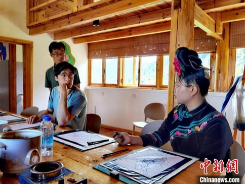 在白巖村,張以沫和朋友們挽起褲腳與村民一起下田收割稻谷,沉浸式體驗(yàn)勞作樂(lè)趣;沿著蜿蜒的山路,“打卡”依山而建的苗寨和景色秀美的森林公園;跟著苗家姑娘學(xué)習(xí)苗繡和蠟染,累了就坐在窗邊喝著咖啡看日落山林。